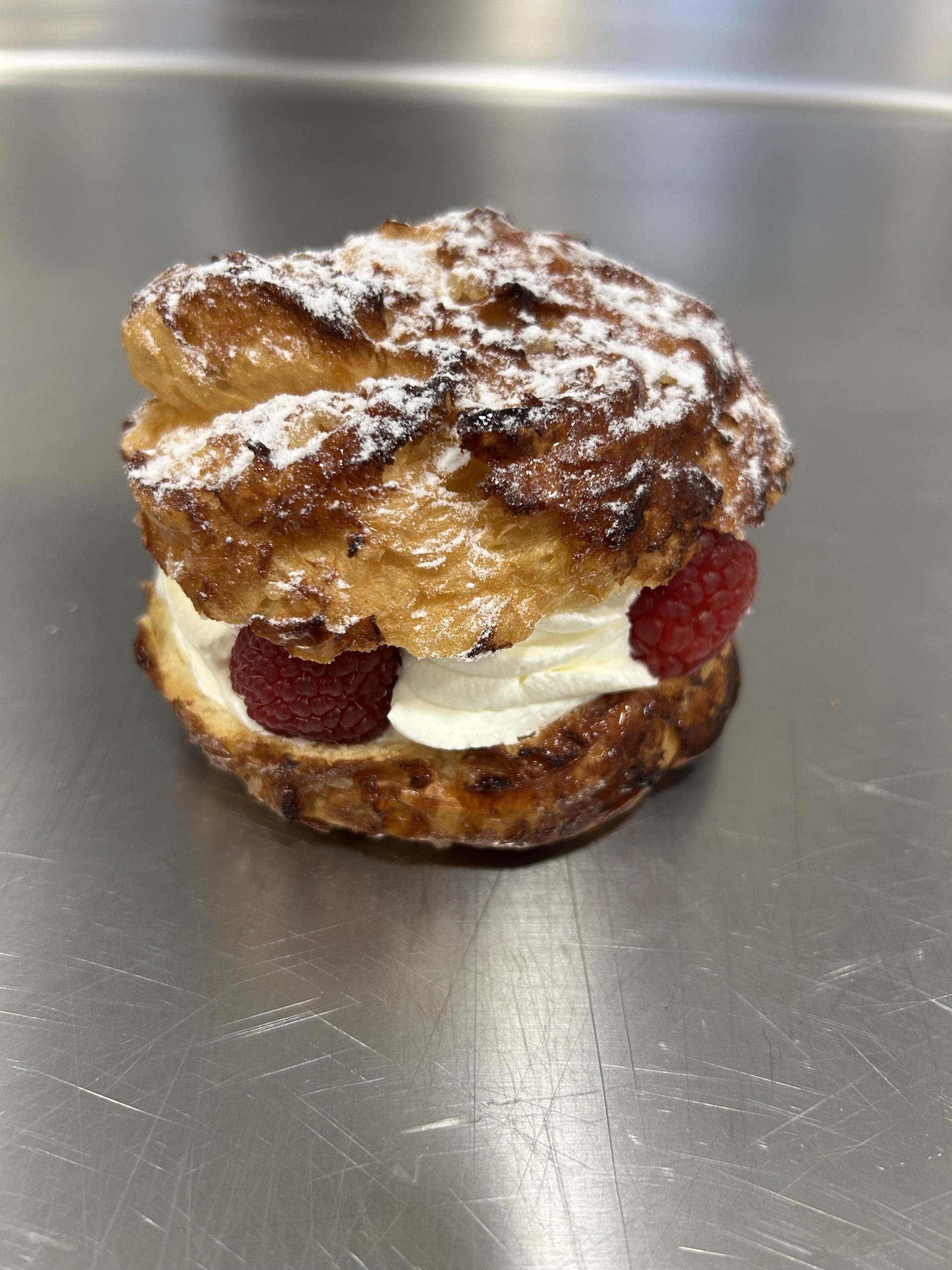 Un vent de fraîcheur et de douceur : alliance légère de chantilly onctueuse et de framboises acidulées dans un choux croustillant.